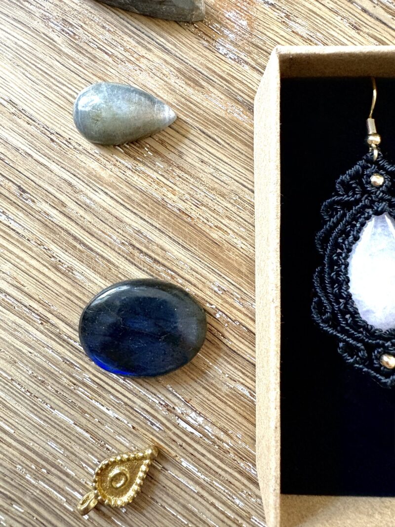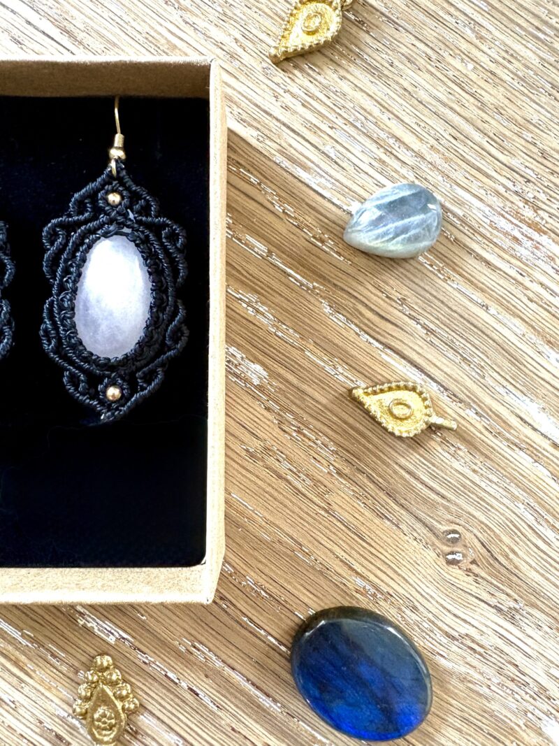 Pour préserver la beauté de vos boucles d’oreilles, évitez le contact avec l’eau et les produits chimiques. Rangez-les dans un endroit sec et à l’abri de la lumière directe.