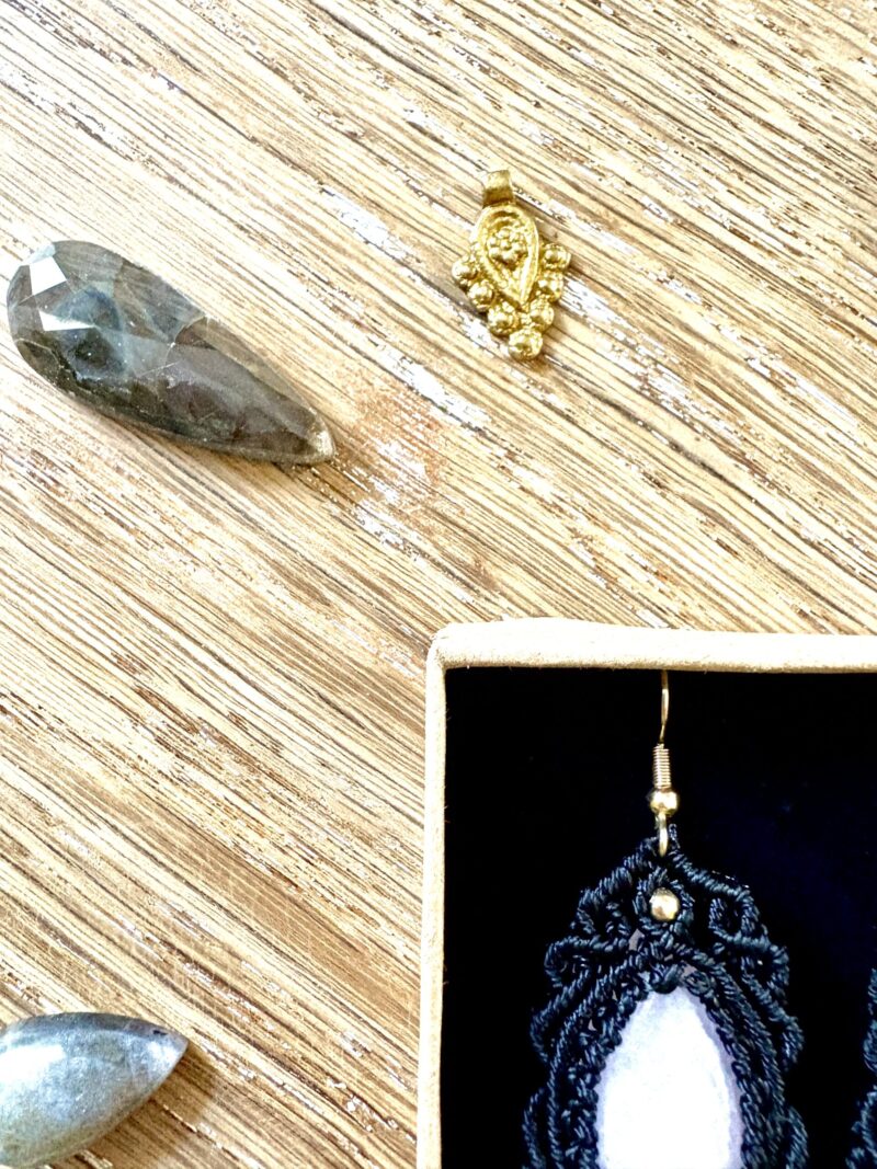 Ornées de quartz rose, chaque paire est soigneusement réalisée à la main, alliant l’art du macramé à la beauté naturelle du quartz rose, connue pour rééquilibrer les énergies du corps afin d’apaiser l’esprit et favoriser le bien-être.