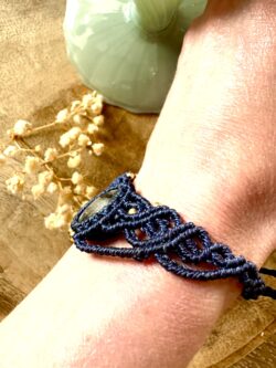 Bracelet macramé avec agate noire naturelle, fait main, réglable et au style bohème intemporel. Apporte force, équilibre et caractère.