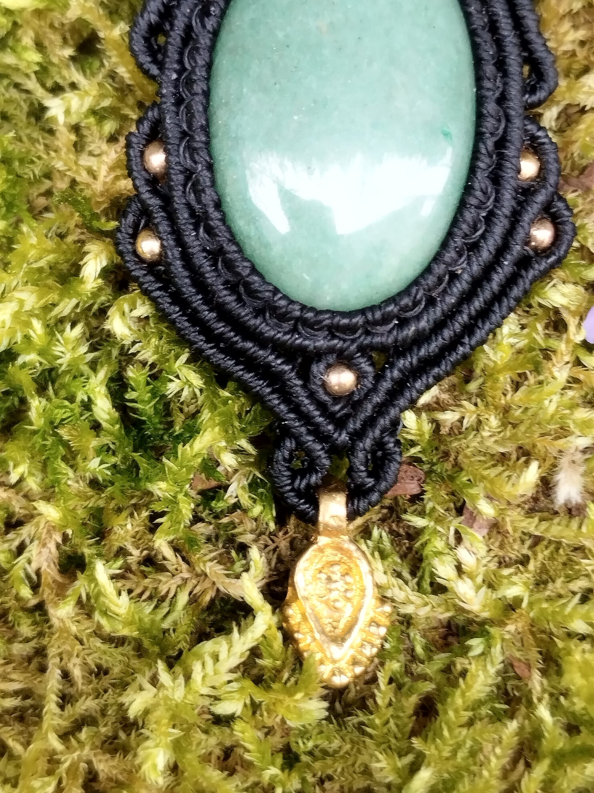 Fil ciré linhasita de couleur noire, perles laiton et breloque indienne.